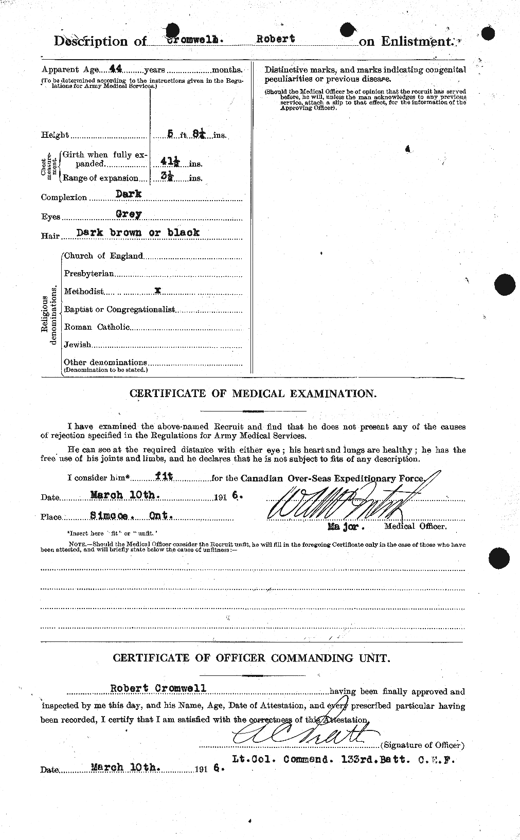 -- Robert Cromwell, 44, of Port Dover, Methodist, tinsmith, born 28 Jun