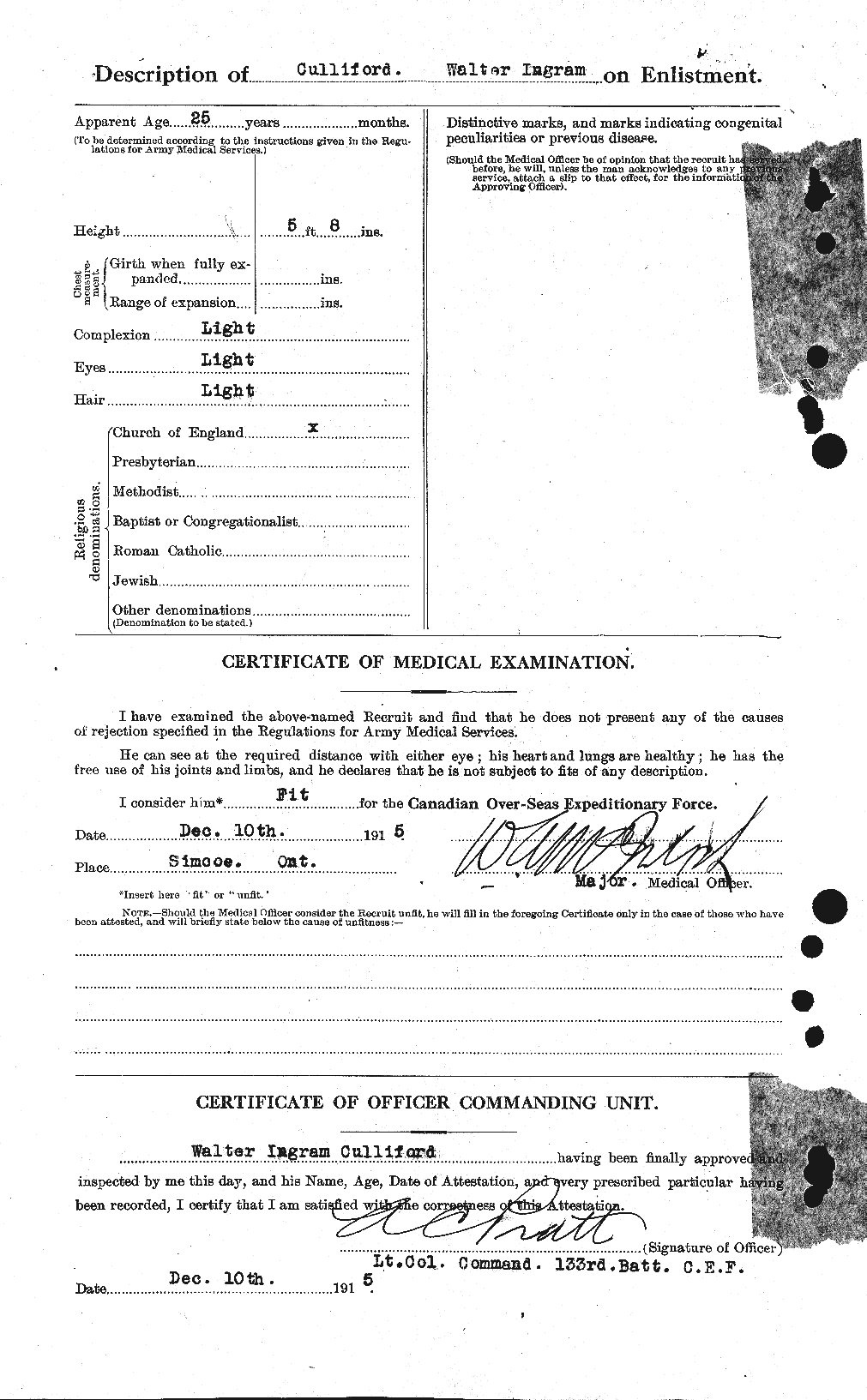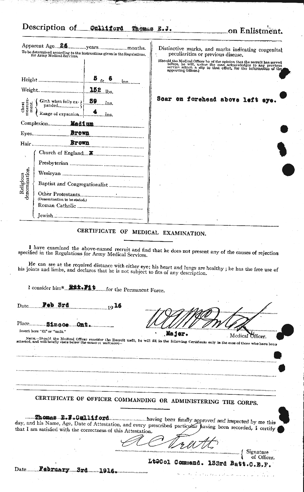Waterford Culliford -- Thomas E. Culliford's 22 Nov 1917 letter home from France [WS19180103p1] -- Pte. Thos. Culliford's 23 Apr 1918 letter from France [WS19180523p1] -- Thomas Edward Ingram Culliford of Waterford is reported wounded [SR19180905p1] Culliford -- "Pte. Fred Shanks and Thomas Culliford are two Waterford soldiers whose families welcomed them home last week. Pte. Culliford lost a leg in France, and Pte. Shanks was wounded twice. Both were members of the former 133rd Bn." [SR19190102p4] -- Private Thomas Culliford of Toronto spent the weekend at his home in Waterford [SR19190403p9] Culliford -- Mrs. T. Culliford of Waterford has her brother, Pte. Fred Kirkup of the 18th Battalion, recently returned from overseas, visiting [SR19190605p2] -- Mrs. T. Culliford has Mrs. Thos. Corlett and her two little girls of Toronto visiting [SR19190724p2] Culliford -- Thomas
