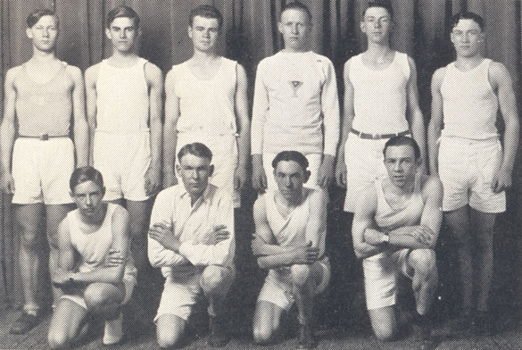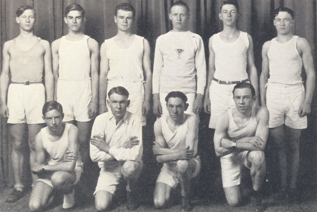 "Field Day Champions "Back Row, left to right – Jack McInally, Arthur Innes, Harold Mason, John "Jack" Cope, Leonard Mason, Craig Stuart. "Front Row, left to right – Lawrence Wedd, John Pow, Harry Walsh, Gerald Hilliard. -- also see an enlargement of the above photo scan -- also see 1929 Simcoe High teaching staff photo. -- also see 1929 Simcoe High Monocle executive photo. -- also see 1928-29 Simcoe High Girls Hockey Team. [Compiler's Comments: The photo above was scanned from the first issue of the Simcoe High School yearbook, the 1929 Monocle. The scan was made 25 Nov 2010 by John Cardiff. The source document (Monocle No. 1) was snail mailed to us 1 Nov 2010 by Elaine Sweetlove of Ancaster, Ontario and her daughter Lorraine Mordeca. This copy of the Monocle belonged to Robert E. Thornton and his wife Phyllis (Jewell) Thornton Sweetlove.] |